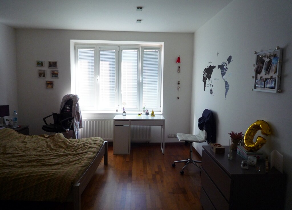 I exclusively offer to rent a beautiful, modern apartment in the complete City Center, in a completely renovated brick apartment house. Located on the 1th floor, the house has a new lift. The apartment is suitable for comfortable living max 3 persons. The living room is shared with kitchen and dining room and pantry. Three bedrooms each have their own wardrobe, bed and table. One of the rooms has a private bathroom, and the other has a shared bathroom. There are two large wardrobes and a shoe rack on the common corridor. The kitchen is fully equipped with appliances, washing machine and TV. The living room has a modern fireplace. The house has its own courtyard where parking is possible. The apartment is also suitable for students. The apartment is free from 1.7.2020. Rental period at least 1 year! The rental price is without energy. For English, send a message 0915976113.
