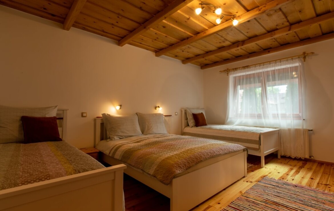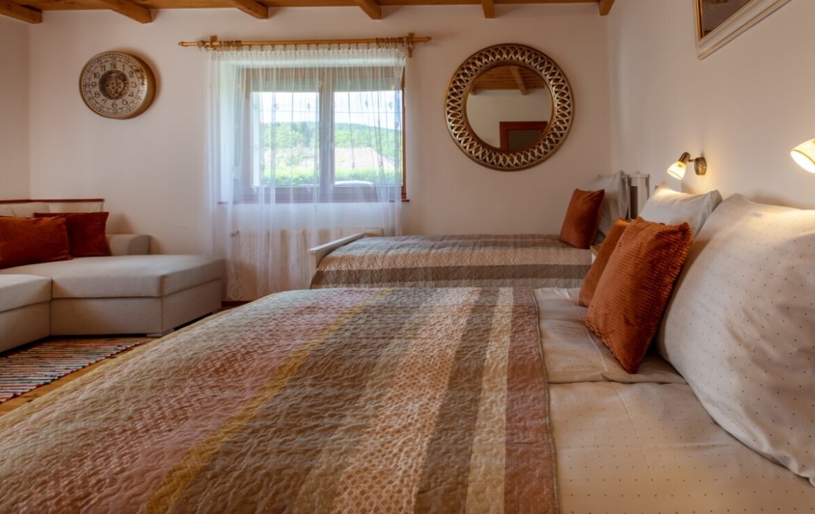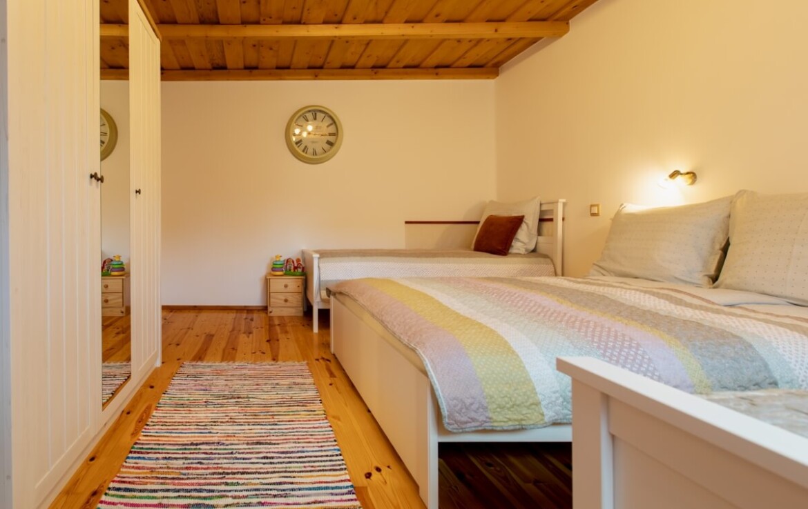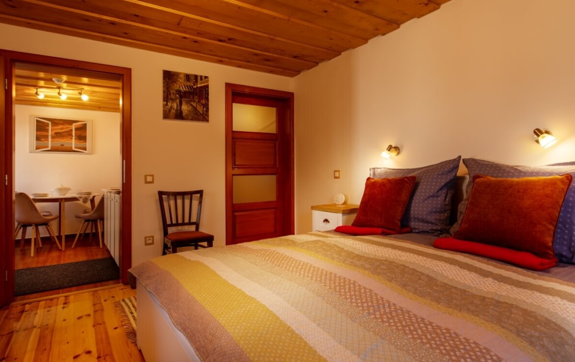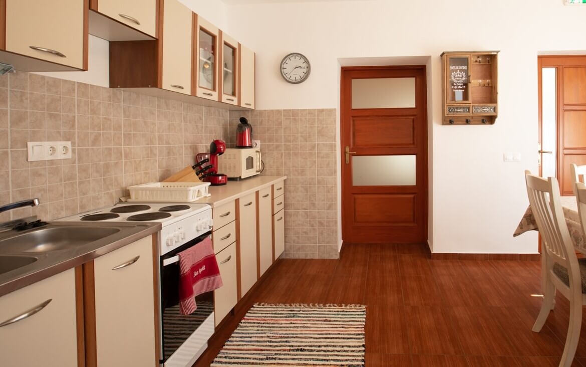 ✔ Menší dom (ca 30m2) – malá kuchynka, spálňa s manželskou posteľou + kúpeľňou s WC. Výstup z neho je do letnej kuchyne s plne funkčnou tehlovou pecou, ktorá bola v minulom storočí súčasťou každého gazdovstva.