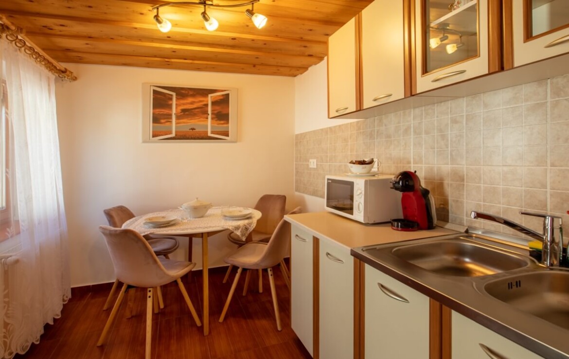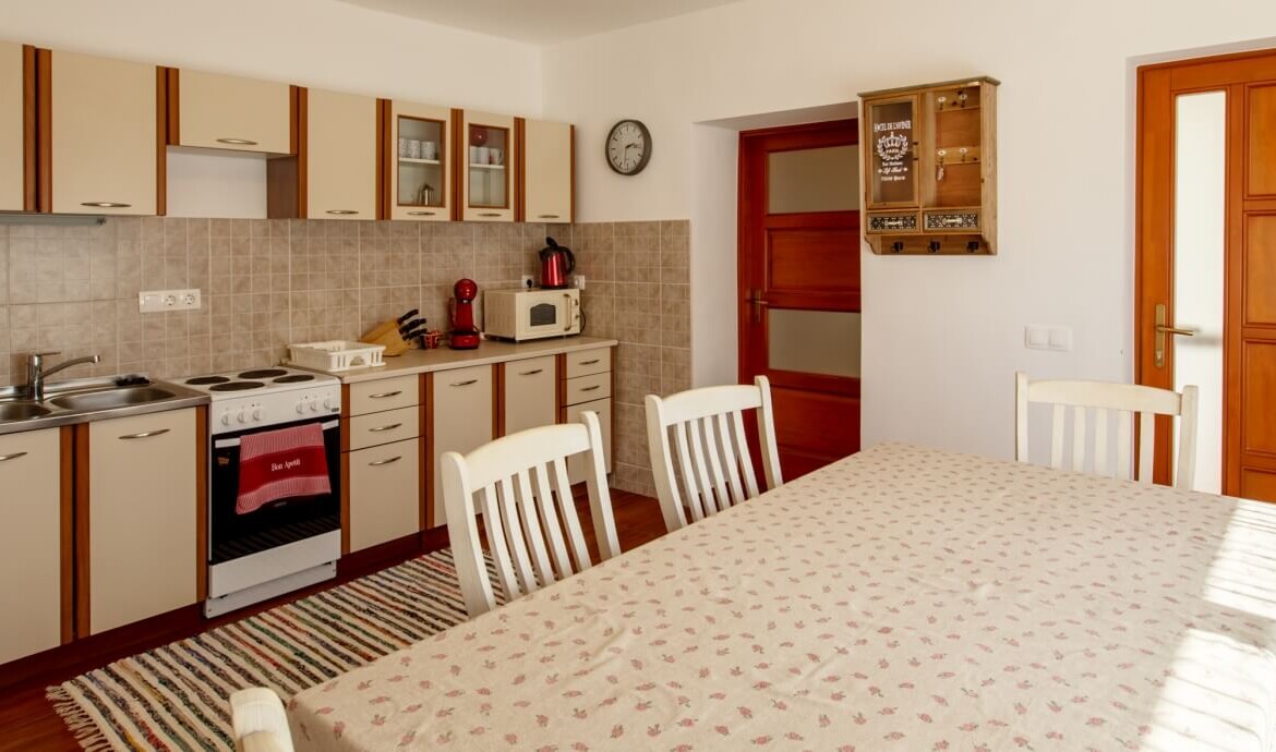 Obidva domy sú vkusne, romanticky a pritom súčasne zariadené – nábytok, SMART TV, Wi-Fi, plne vybavené kuchyne s elektrickou varnou doskou, kávovarom a mikrovlnkou, pripravené ihneď k užívaniu. Bezbariérový prístup.