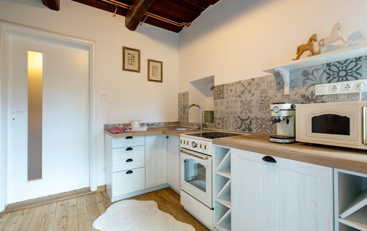 ✔ Menší dom – malá kuchynka, spálňa, WC a kúpeľňa.